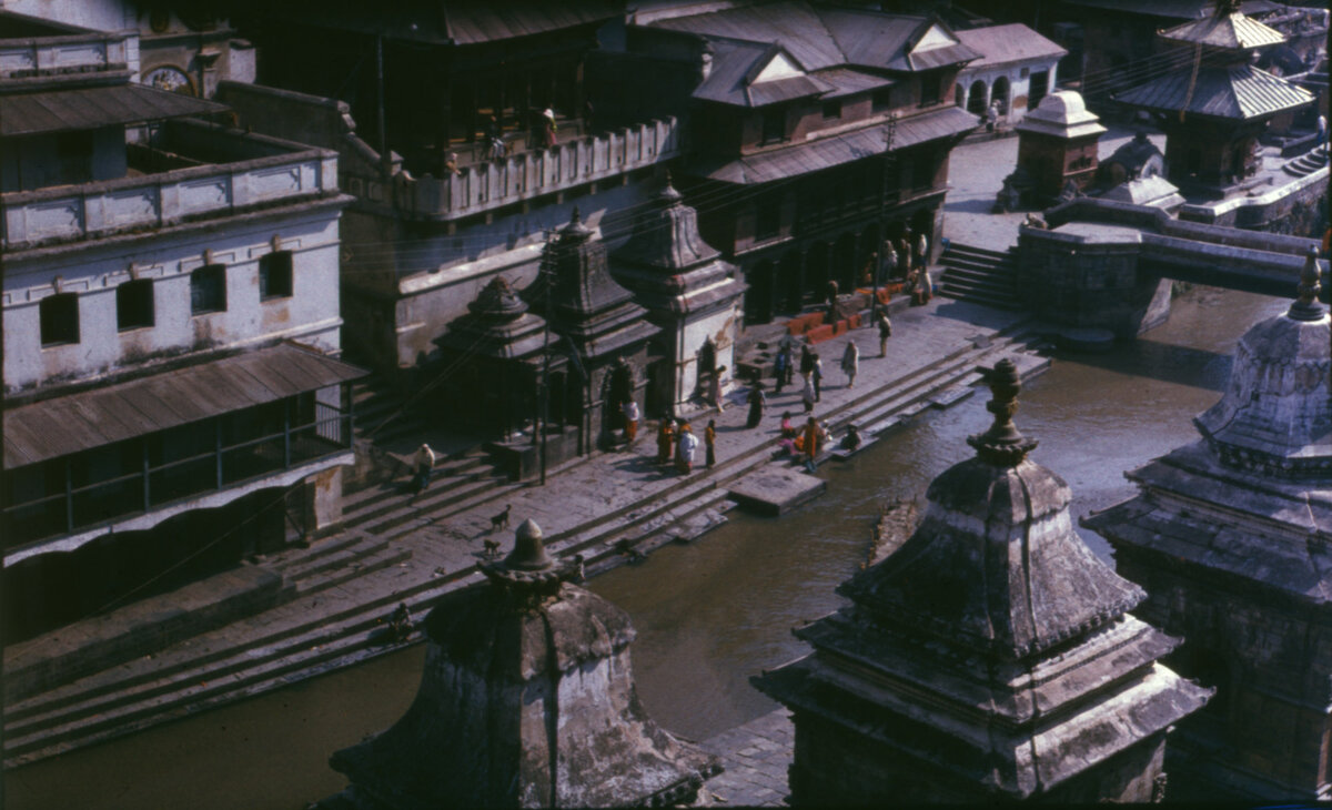 Храмовый комплекс Пашупатинатх. Совсем пустынный. Сейчас там с утра до вечера толпы и толпы туристов, все хотят посмотреть как сжигают трупы. Тогда, в Непале туристов не было от слова совсем. Единицы приезжали в страну, и совсем немногим удавалось попасть в горы. Непал привлекал и манил к себе вот этой своей неизвестностью. Но жить тут было крайне тяжело.