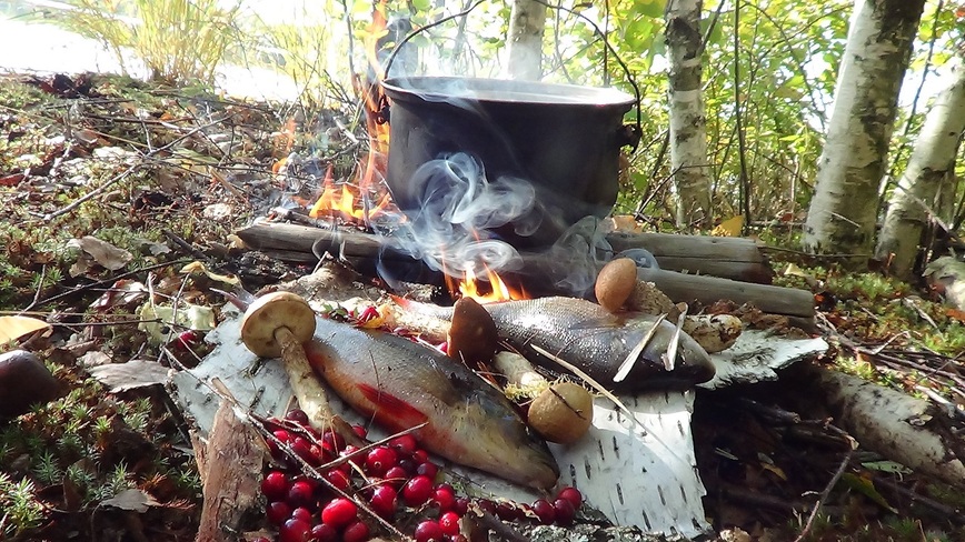 Во время моих экспедиций кроме собственных кулинарных «алхимических» творений не обходилось без опробывания местных рыбных блюд, в которых смешивались разные компоненты и сочетались разные вкусы. Понятно кроме дегустации перенимались и рецептурные изюминки приготовления рыбных «мешанок».